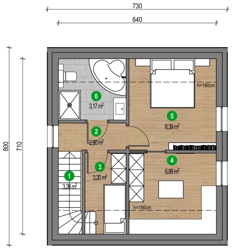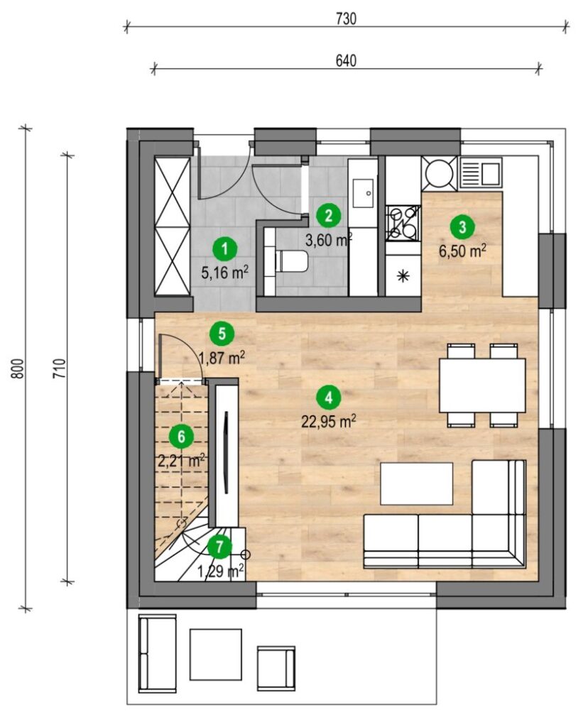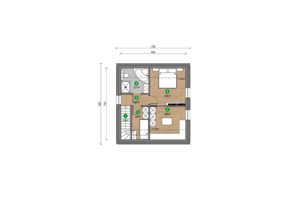 Projekt Squash je dom s rozlohou 71 m2 s obytným podkrovím. Hmota domu je veľmi jednoduchá, pričom plocha domu je optimálne využitá. Projekt je v súlade s normou WT 2021, pripravený na adaptáciu a výber jedného z populárnych systémov (plyn, tepelné čerpadlo, infračervené vykurovanie, elektrické vykurovanie, rekuperácia, fotovoltika).