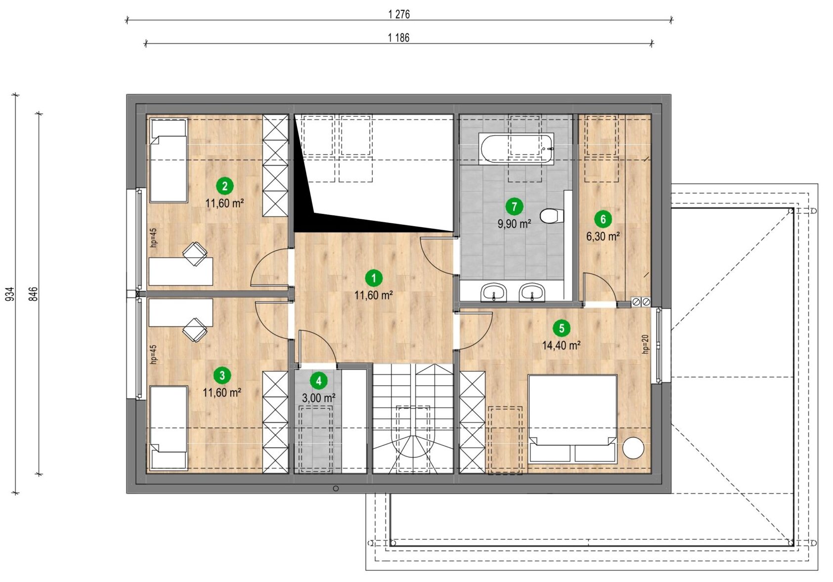 Pôdorys využiteľné podkrovie