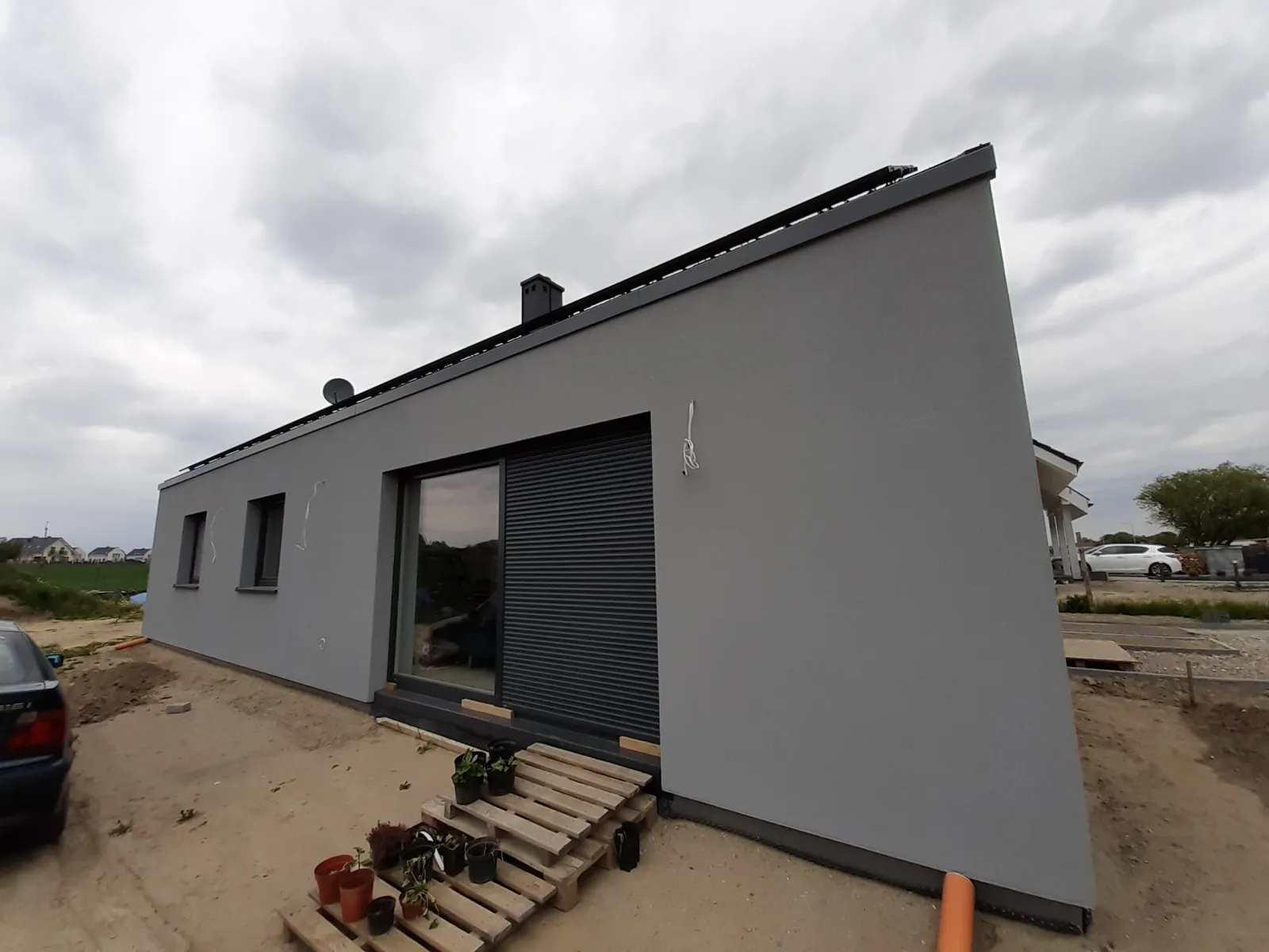 84-metrový dom bol postavený na tradičných základoch, konkrétne na výstužných základoch a základových múroch. Nosné steny a priečky sú vyrobené z pórobetónu s hrúbkou 24 a 12 cm. Konštrukcia strechy bola vytvorená z prefabrikovaných väzníkov zo štyrikrát hobľovaného dreva triedy C24. Strecha budovy je pokrytá falcovaným plechom Budmat Prime Click 515 v antracitovej farbe.