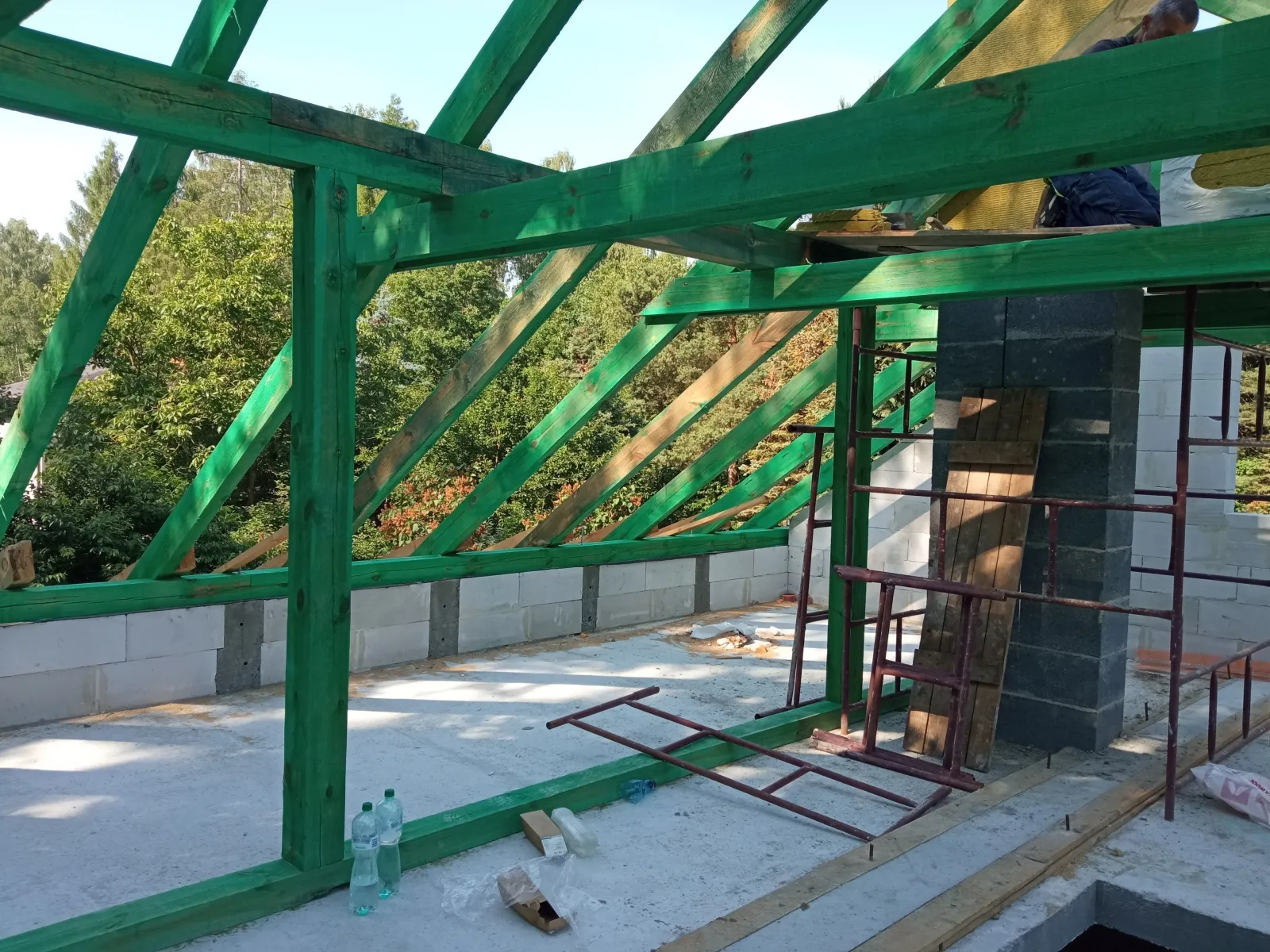 Bola zrealizovaná tradičná krovinová konštrukcia podľa projektu a strecha budovy bola pokrytá plechovou krytinou.