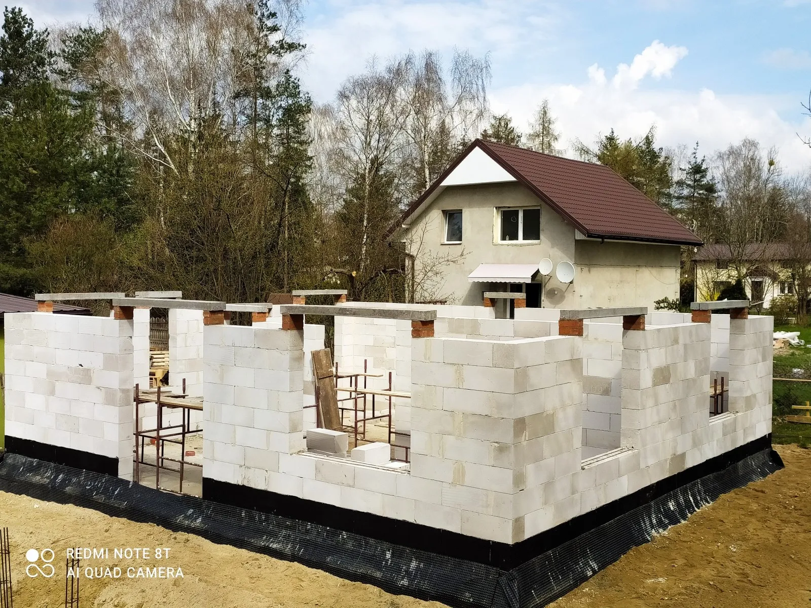 Dom o rozlohe 130 m² bol postavený na tradičných základoch, teda na vystužených pätkách a základových múroch, ktoré boli izolované polystyrénom Aqua o hrúbke 15 cm. Nosné a deliace steny sú vyrobené z blokov z pórobetónu s hrúbkou 24 cm a 12 cm a boli murované na tenkovrstvovom lepidle triedy M5.
