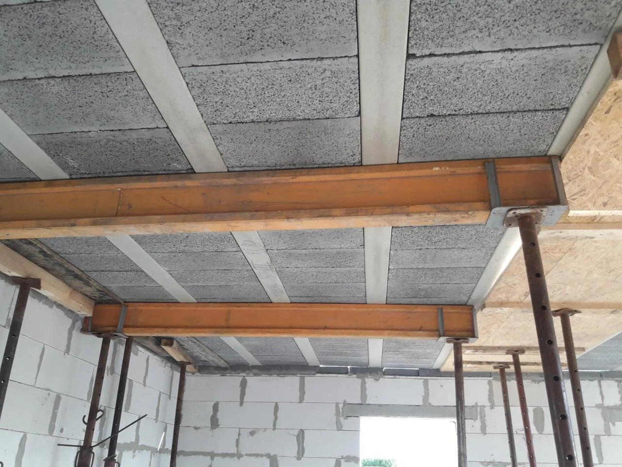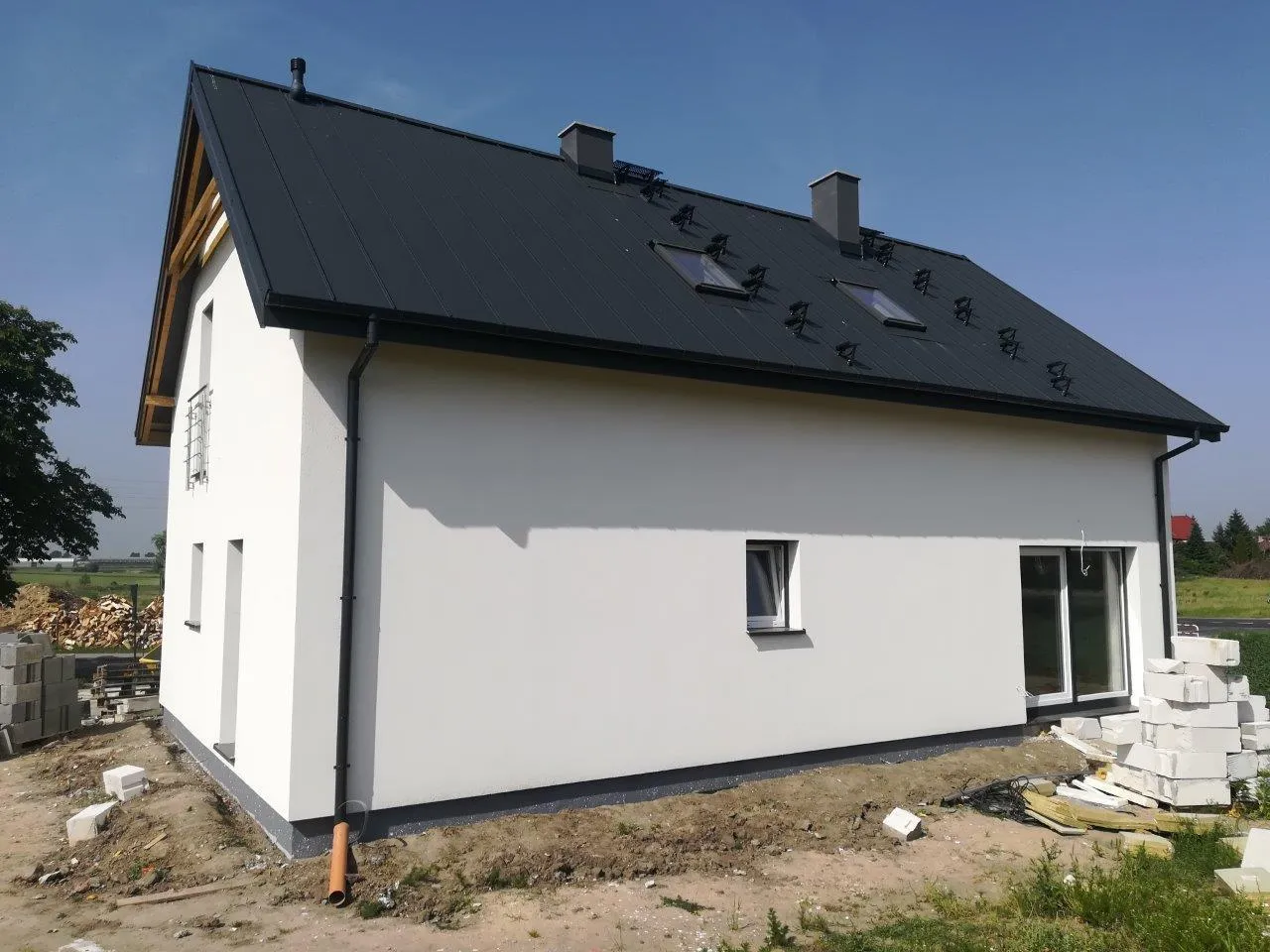Pre konštrukciu stropu nad prízemím boli použité prvky Teriva. Obe komíny sú zostavené z keramických tvaroviek. Strešná konštrukcia je vyrobená z impregnovaného ihličnánového dreva a strecha je pokrytá plechom na falc – Emka Planja Click – Matt Grafit. V streche sú namontované štyri okná značky Velux model V.GLL MK061061B.