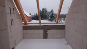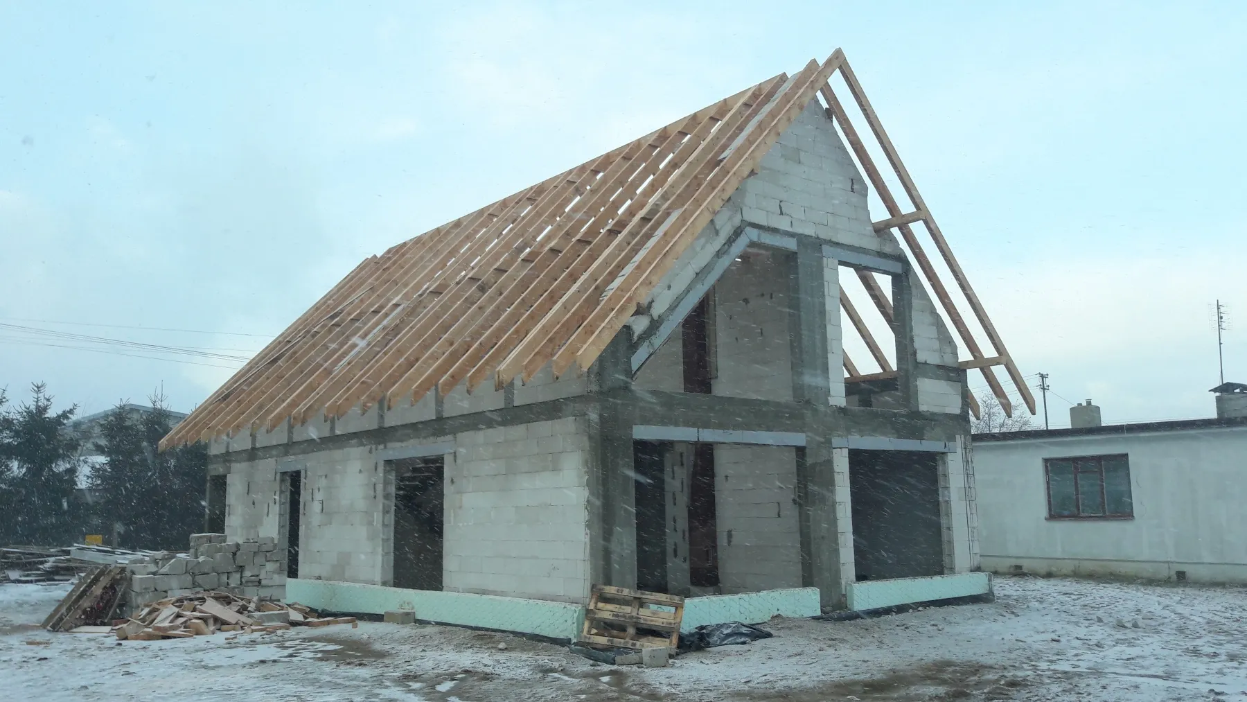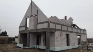 Obytná budova bola postavená na tradičných základoch, teda na spevnených pásoch a tepelne a vodne izolovaných základových múroch. Všetky steny boli vyhotovené z pórobetónu Solbet/H+H a strop bol vylievaný ako spevnená monolitická doska.