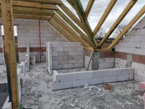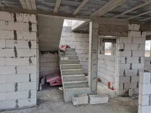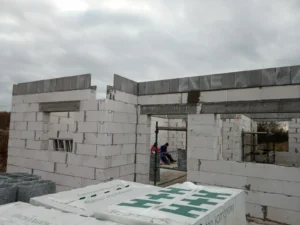 Dom s rozlohou 163 m² postavený na železobetónovej základovej doske s hrúbkou 25 cm. Nosné a priečkové steny boli vyrobené z pórobetónu s hrúbkou 24 cm a 12 cm. Strecha bola vyrobená podľa stavebného projektu z impregnovaného dreva triedy C24. Strechu budovy pokryli betónovými škridlami Braas Rubin 9v v hnedej farbe.