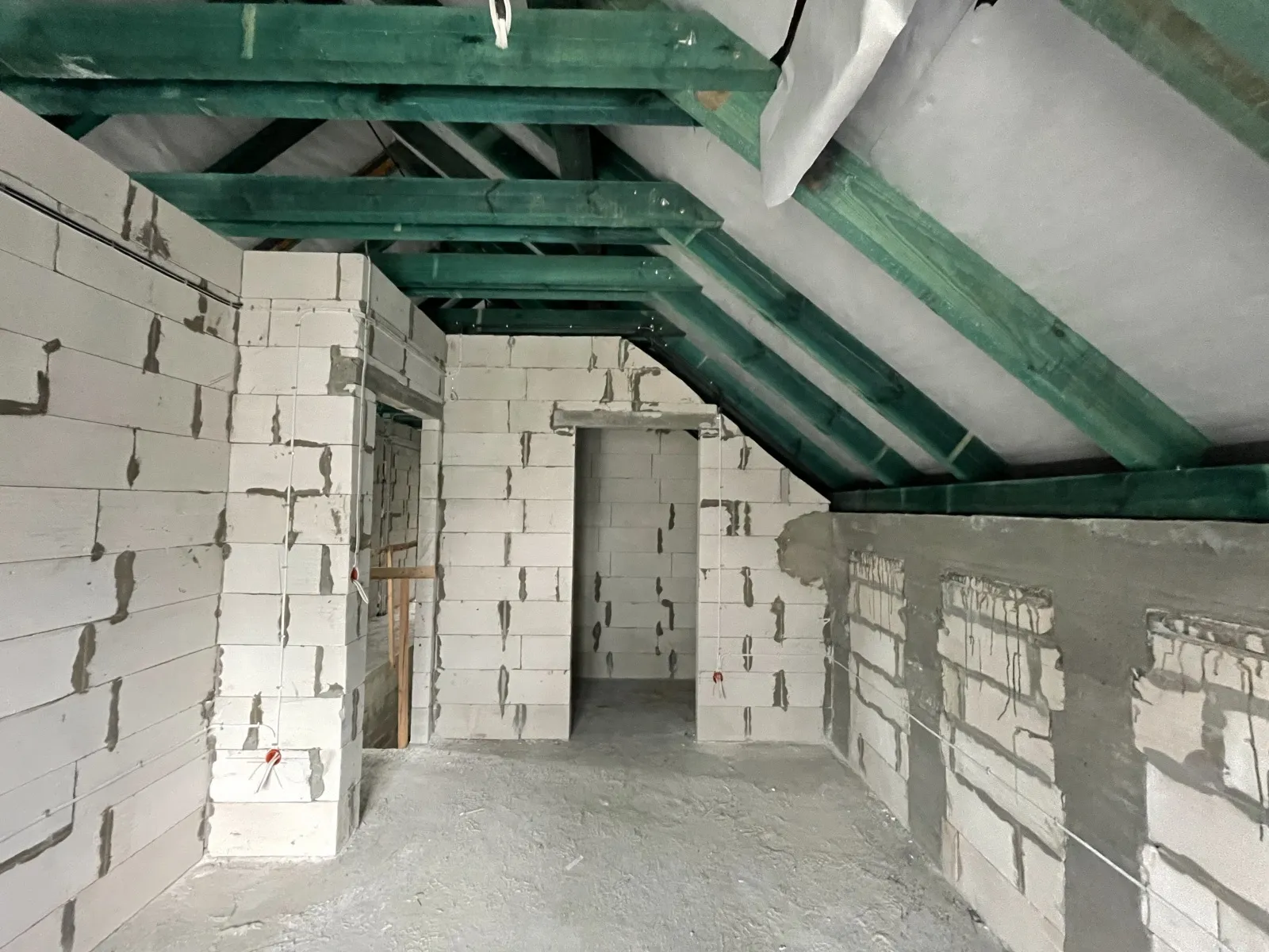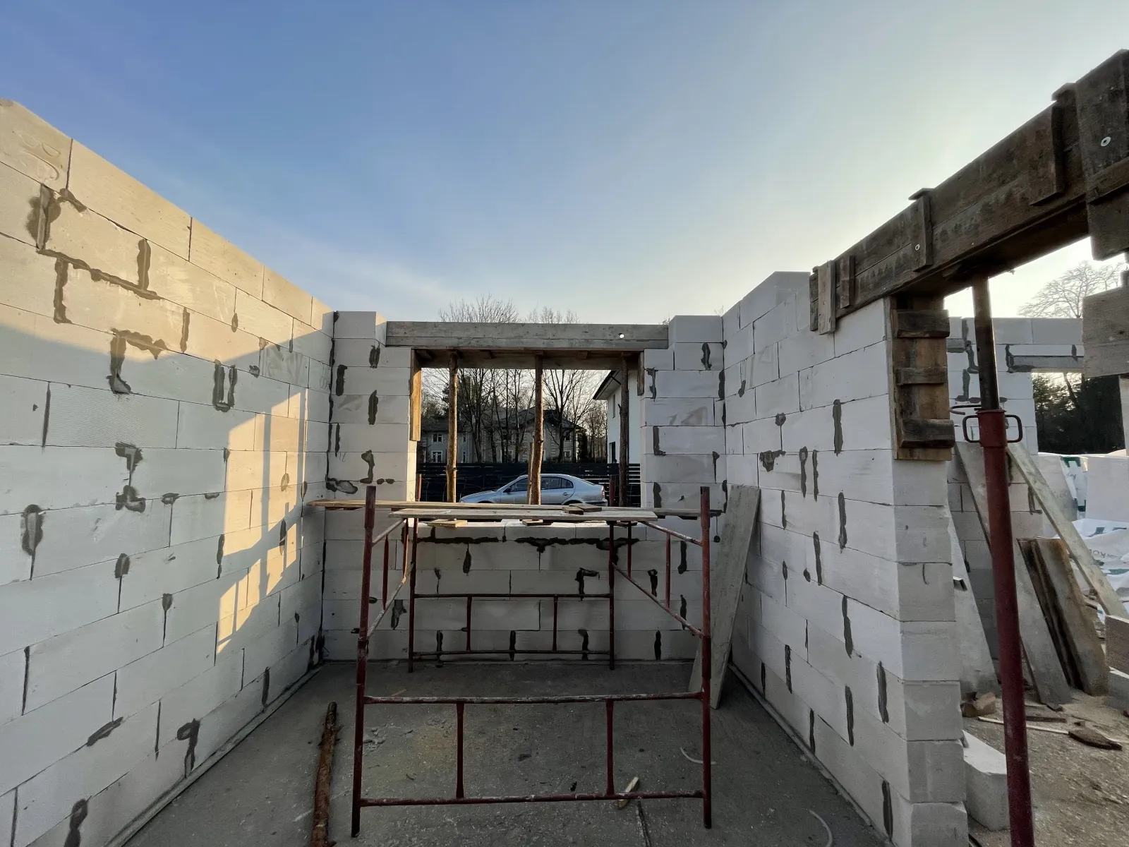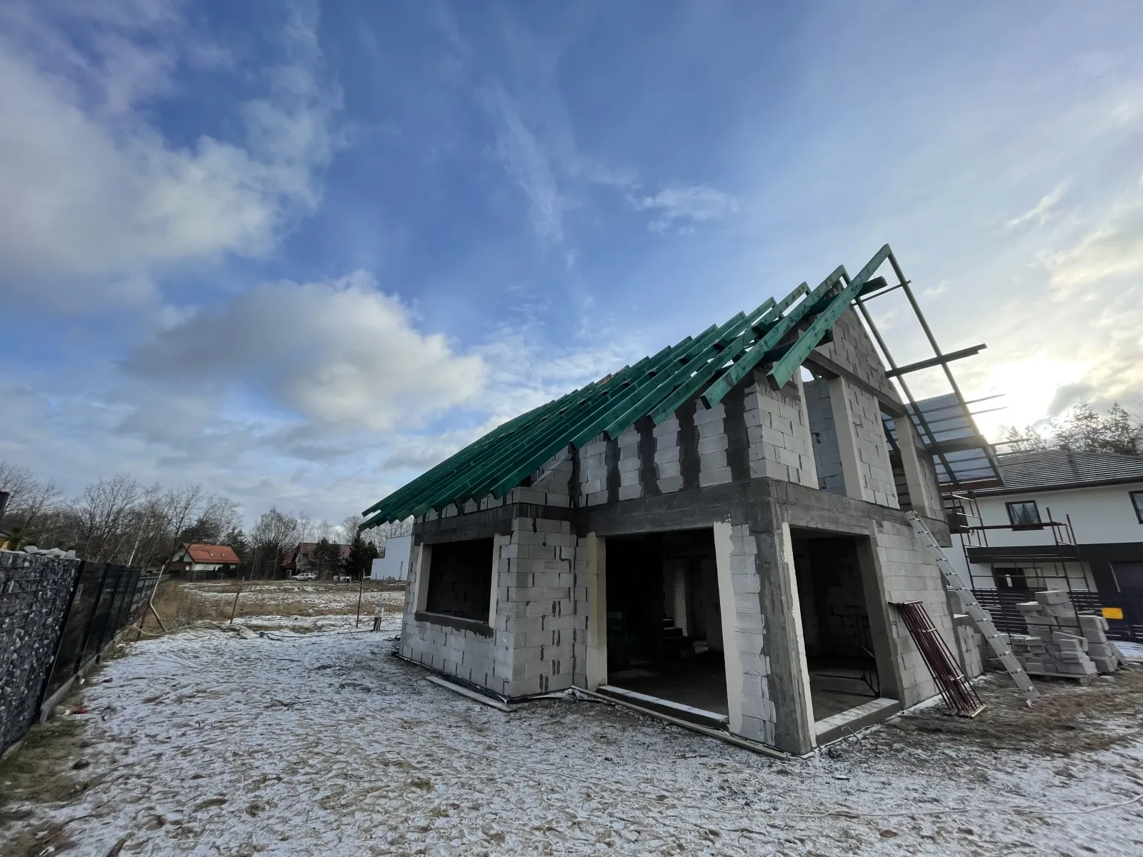 Nosné a priečkové steny boli zhotovené z pórobetónu, zatiaľ čo krov bol postavený tradičným spôsobom, z ihličnatého a impregnovaného dreva. Strecha budovy bola pokrytá betónovou škridlou Braas Celtycka.