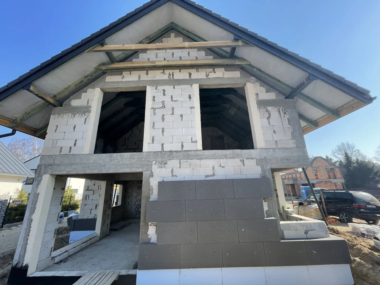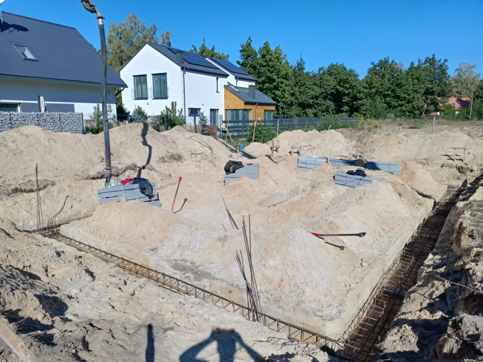 Dom s rozlohou 166 m² je postavený na tradičných základoch, čo zahŕňa vystužené pásy a zateplené základové steny. Boli vykonané aj vertikálne hydroizolácie základových stien.