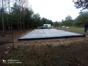Po vykonaní nevyhnutných prípravných prác bola zhotovená vystužená základová doska s energeticky úspornou izoláciou z extrudovaného polystyrénu XPS 300, s hrúbkou 15 cm. Nosné steny a priečky budovy boli zhotovené v prefabrikovanej rámovej konštrukcii, s prierezom príslušne 60×200 a 60×100. Steny boli vyplnené minerálnou vlnou. Strecha bola zhotovená ako prefabrikovaná drevená konštrukcia, pokrytá plochou betónovou krytinou.