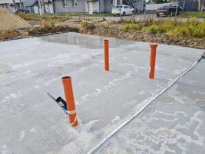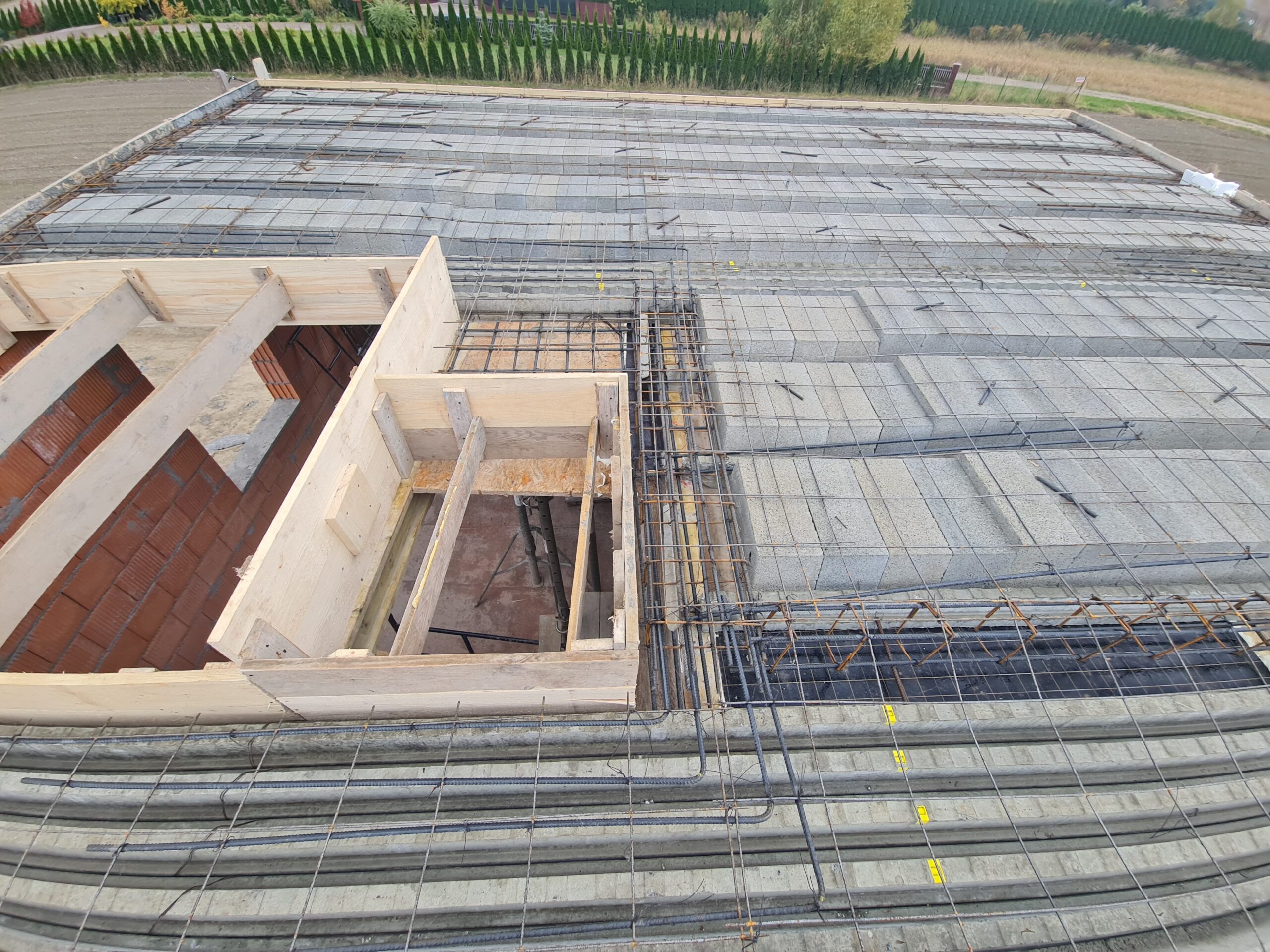 Po vykonaní nevyhnutných prípravných prác bola zaliata vystužená základová doska s energeticky úspornou izoláciou 15 cm polystyrénu XPS 300. Nosné steny a priečky boli vymurované z tvárnic z pórobetónu, zatiaľ čo strop nad prízemím budovy bol vykonaný ako vystužená monolitická doska.