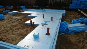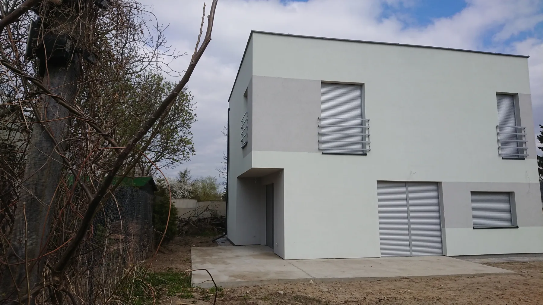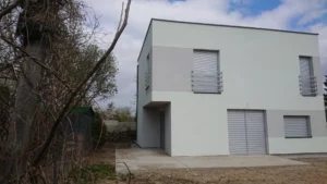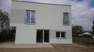 Dom postavený na zbrojenej základovej doske s izoláciou z XPS 300 polystyrénu s hrúbkou 20 cm. Nosné steny boli vyhotovené z pórobetónu, zatiaľ čo priečky z vápenopieskových tehál o hrúbke 12 cm. Plochá strecha bola vytvorená z dvoch vrstiev natavovacej krytiny spolu so zateplením.
