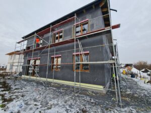 Zateplenie strechy budovy bolo vykonané PUR penou hrúbky 15 cm, a vonkajšie steny – grafitovým polystyrénom hrúbky 20 cm. Na dokončenie fasády budovy bola použitá silikónová omietka v bielej farbe, zatiaľ čo sokel bol dokončený mozaikovou omietkou.