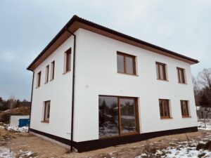 Dom s rozlohou 249 m² postavený na tradičných základoch, teda na vystužených pásy a zateplených základových múroch extrudovaným polystyrénom. Nosné a priečkové steny boli vyrobené z pórobetónu s hrúbkou 24 cm a 12 cm. Krov bol vyhotovený tradičným spôsobom za použitia ihličnatého impregnovaného dreva. Strecha budovy bola pokrytá vlnitou betónovou strešnou krytinou v grafitovej farbe.