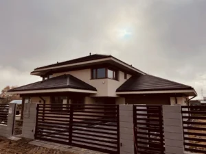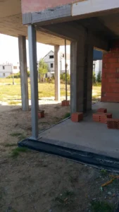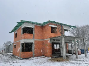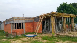 Dom s rozlohou 227 m² bol postavený na tradičných základoch, konkrétne na vystužených základových pásoch a základových múroch. Nosné a priečkové steny sú realizované z keramických tvárnic Porotherm.