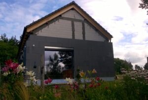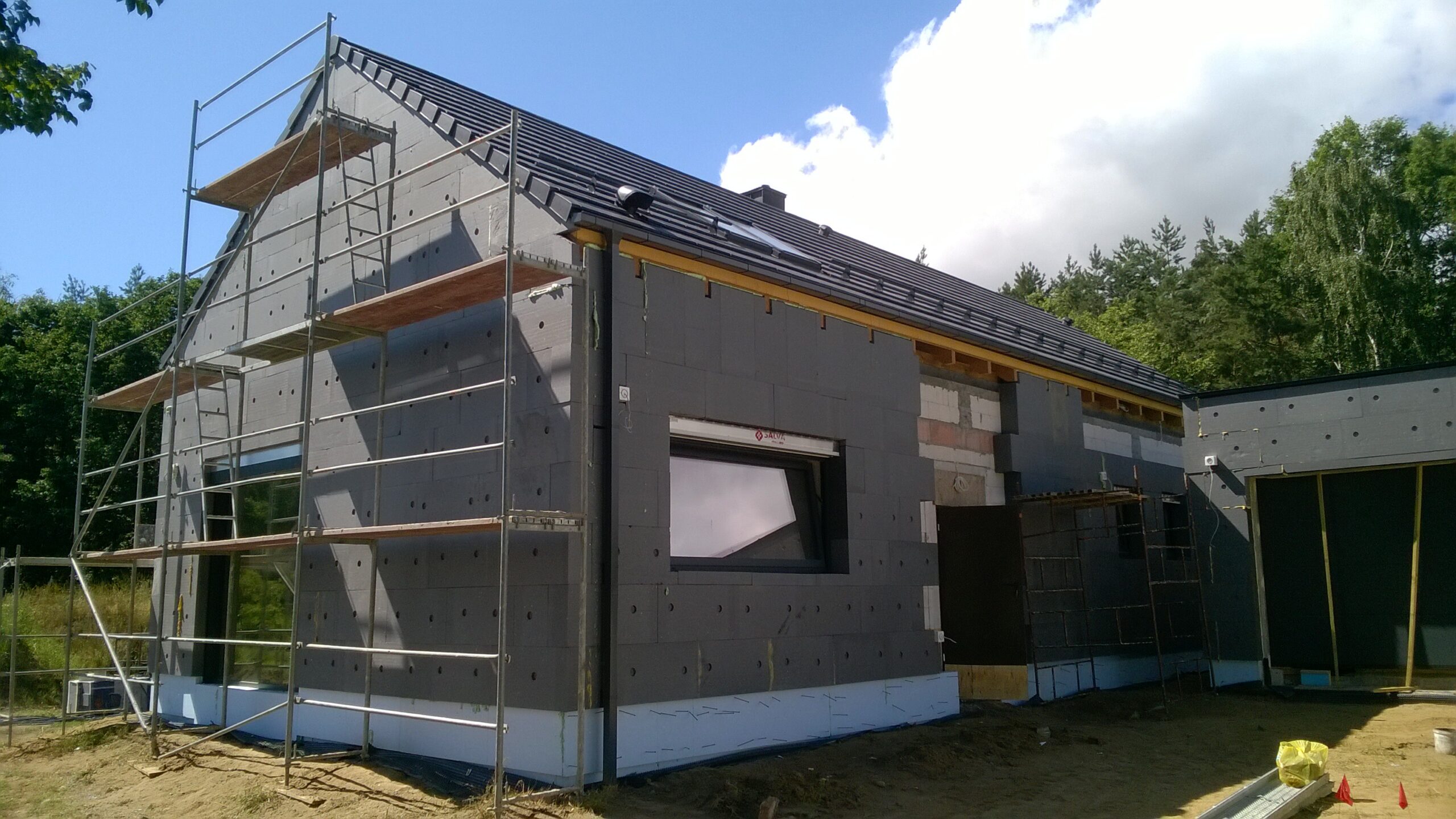 Vonkajšie steny boli zateplené grafitovým polystyrénom s hrúbkou 25 cm. Na dokončenie fasády budovy bola použitá biela silikónová omietka.