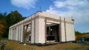 Dodatočne na základových pásoch bola postavená samostatne stojaca garáž.