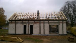 Dom má rozlohu 125 m² a je postavený na tradičných základoch, t.j. na vystužených pásoch a základových múroch. Nosné a priečkové steny boli vyrobené z vápencových blokov s hrúbkou zodpovedajúcou 25 cm a 12 cm. Strešná konštrukcia bola tradične zrealizovaná podľa projektu z impregnovaného ihličnatého dreva. Strecha budovy bola pokrytá strešnou krytinou Creaton Simpla v antracitovej farbe.