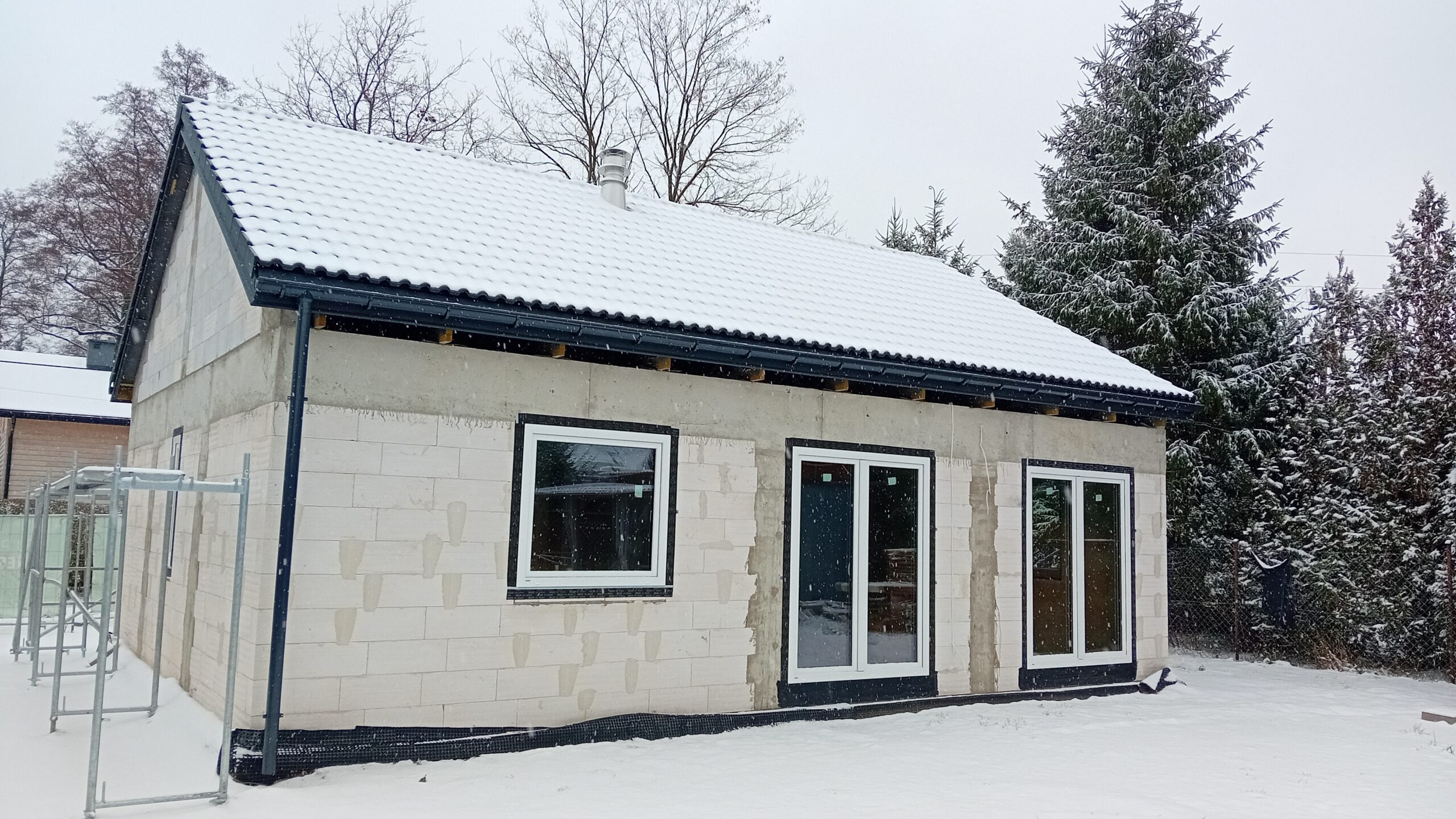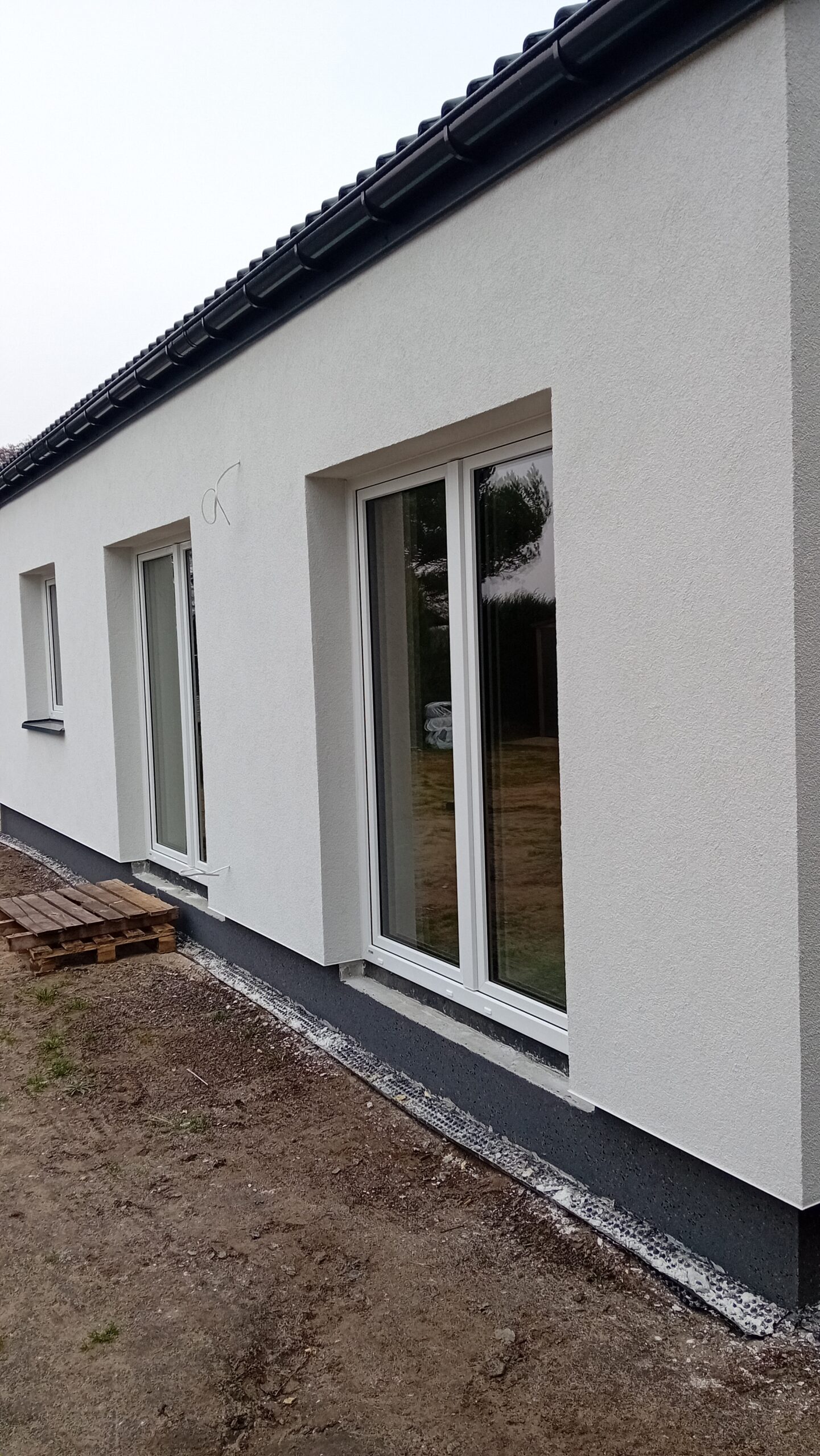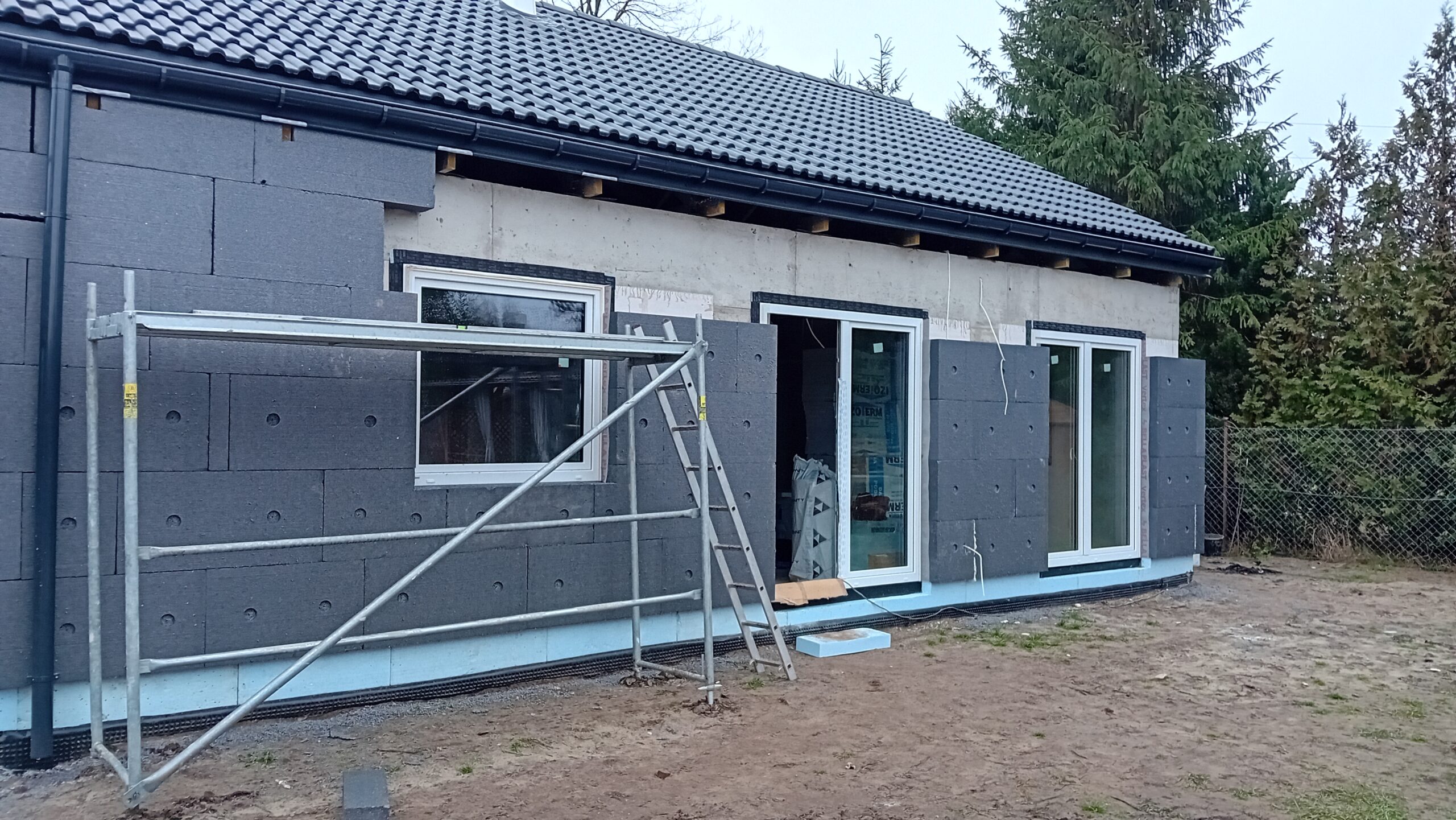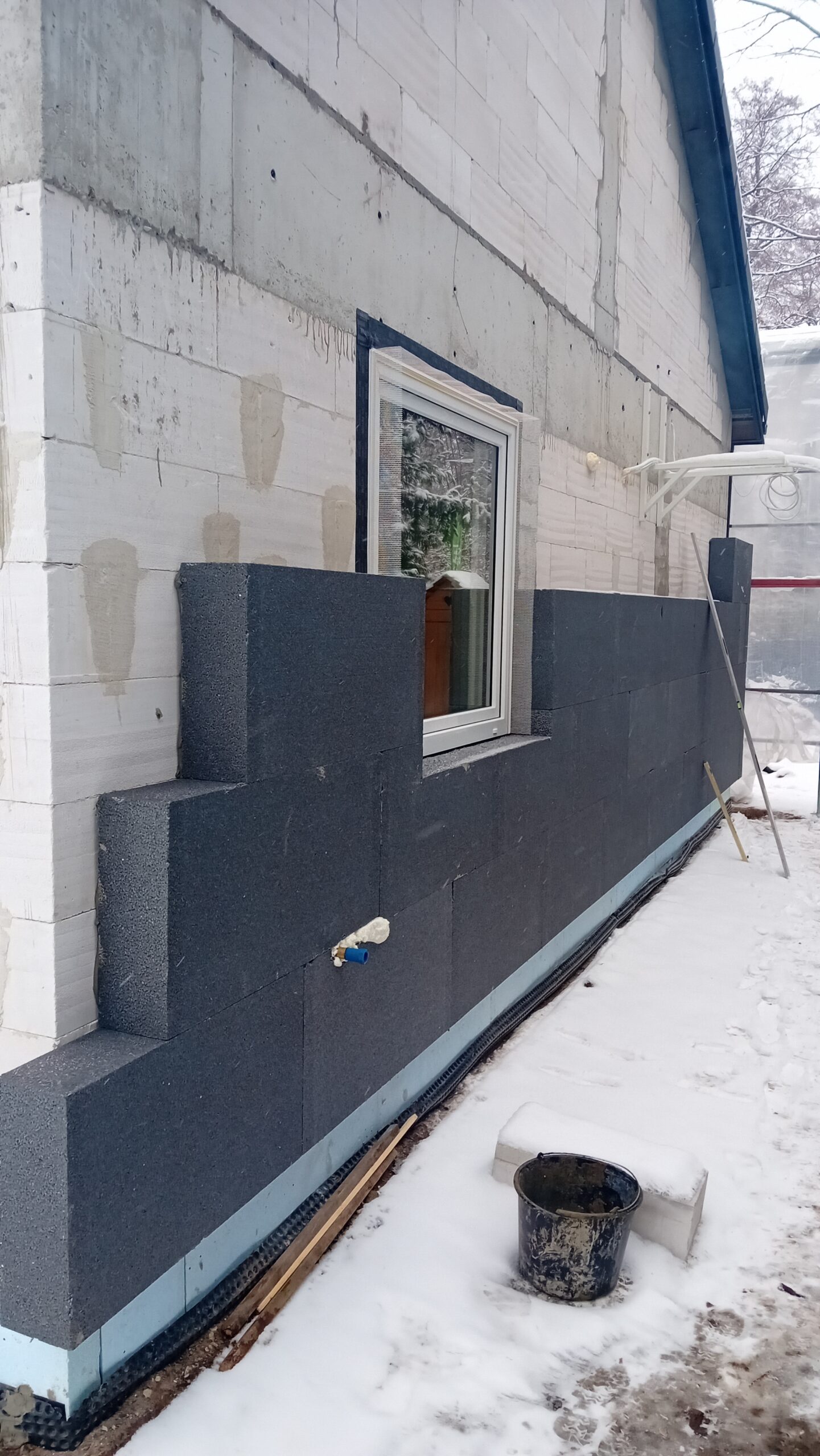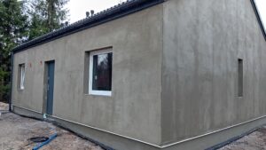 Na zateplenie vonkajších stien bol použitý fasádny polystyrén hrúbky 15 cm, strecha bola zateplená PUR penou hrúbky 25 cm. Na dokončenie fasády budovy bola použitá silikónová omietka.