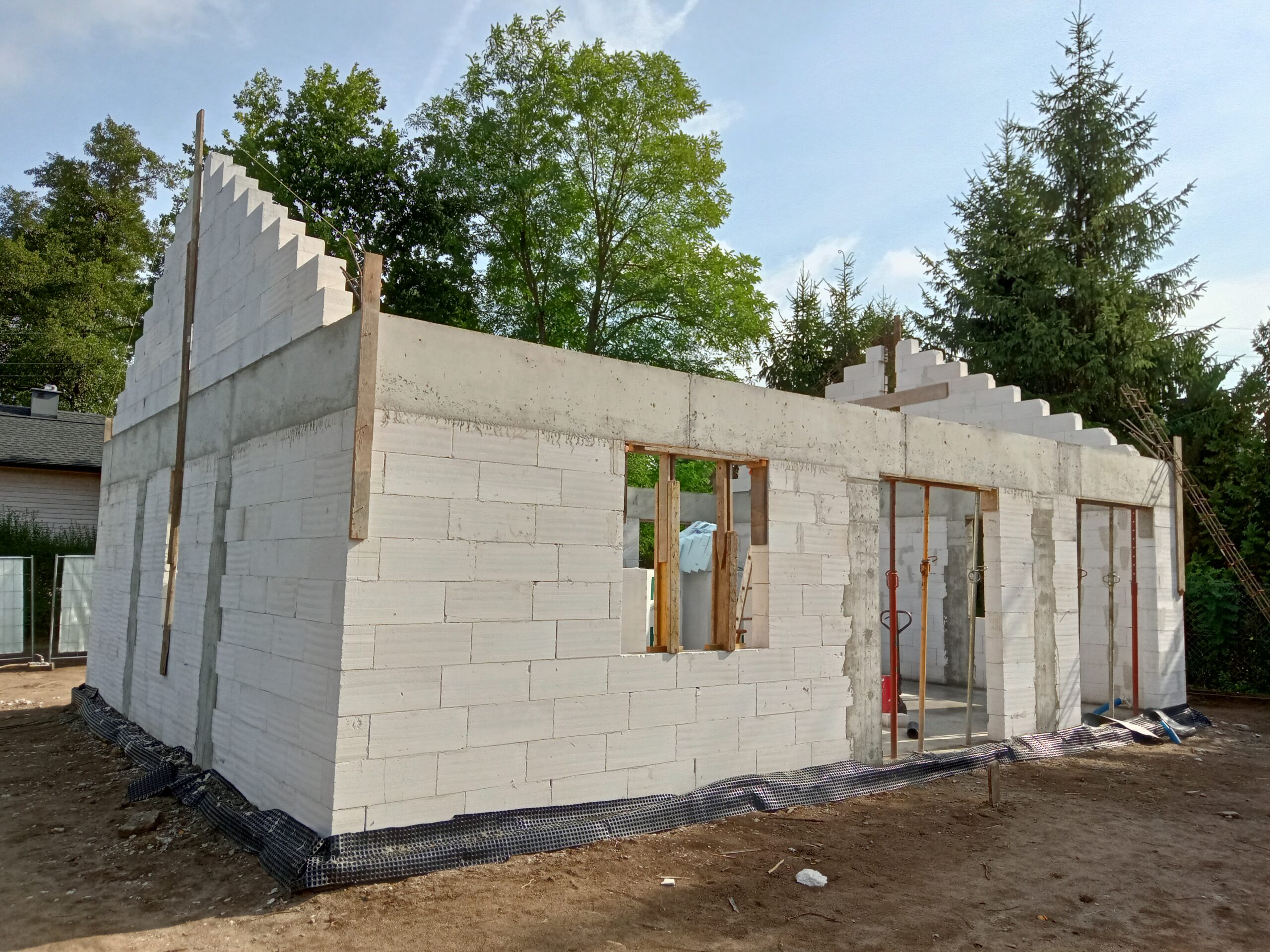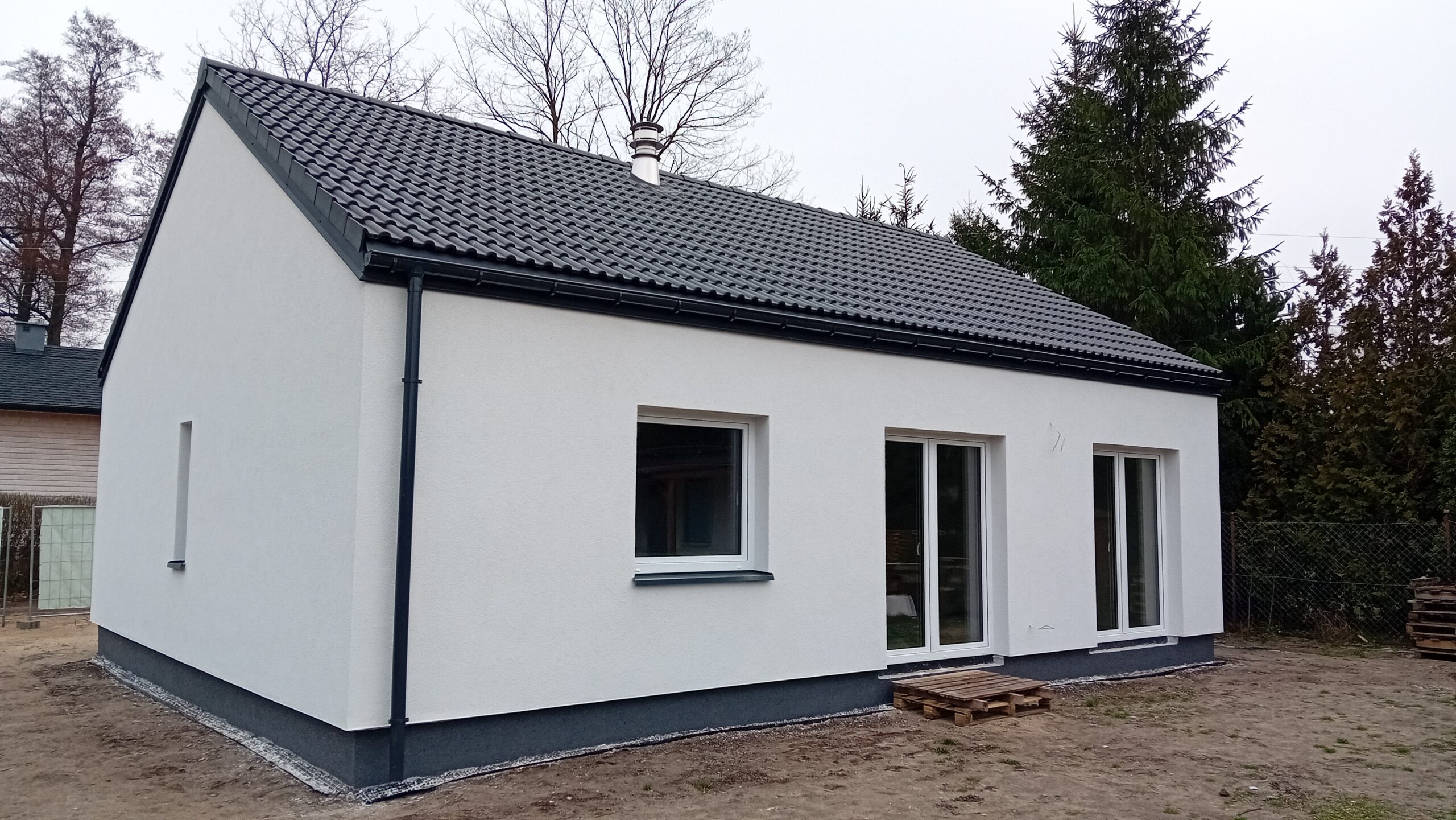 Dom o rozlohe 73 m² je postavený na tradičných základoch, konkrétne na vystužených pásových základoch a izolovaných základových múroch. Nosné a priečkové steny sú zhotovené z pórobetónu, pričom krovová konštrukcia je vytvorená z prefabrikovaných priehradových väzníkov z dreva štvorstranne brúseného. Strecha budovy je pokrytá tvarovanou betónovou škridlou v grafitovej farbe.