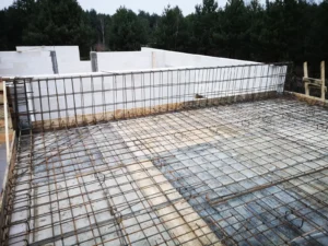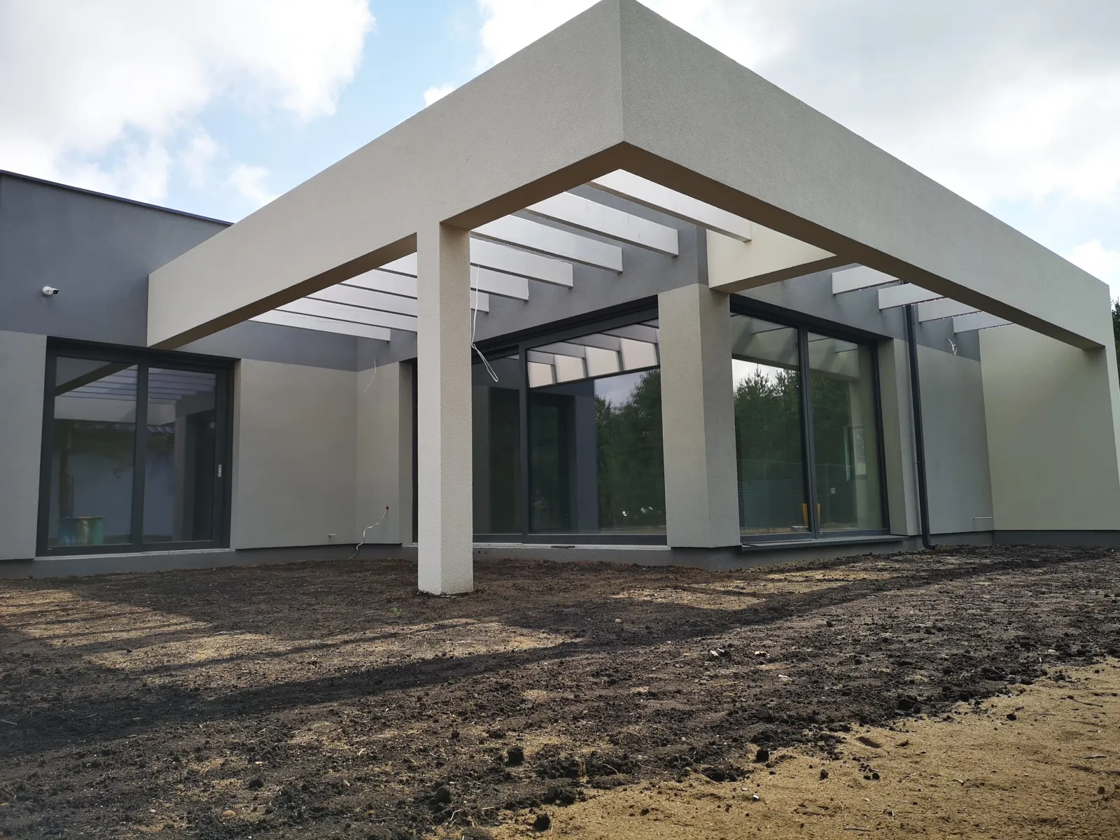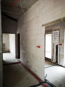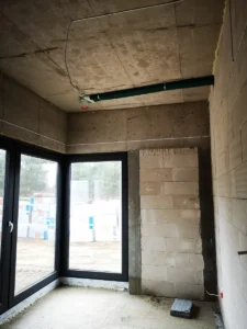 Po vykonaní počiatočných prípravných prác bola naliata vystužená základová doska s tepelnou a hydroizoláciou. Steny budovy vznikli z tvárnic pórobetónu Solbet/H+H, zatiaľ čo strop bol realizovaný ako monolitická železobetónová doska.