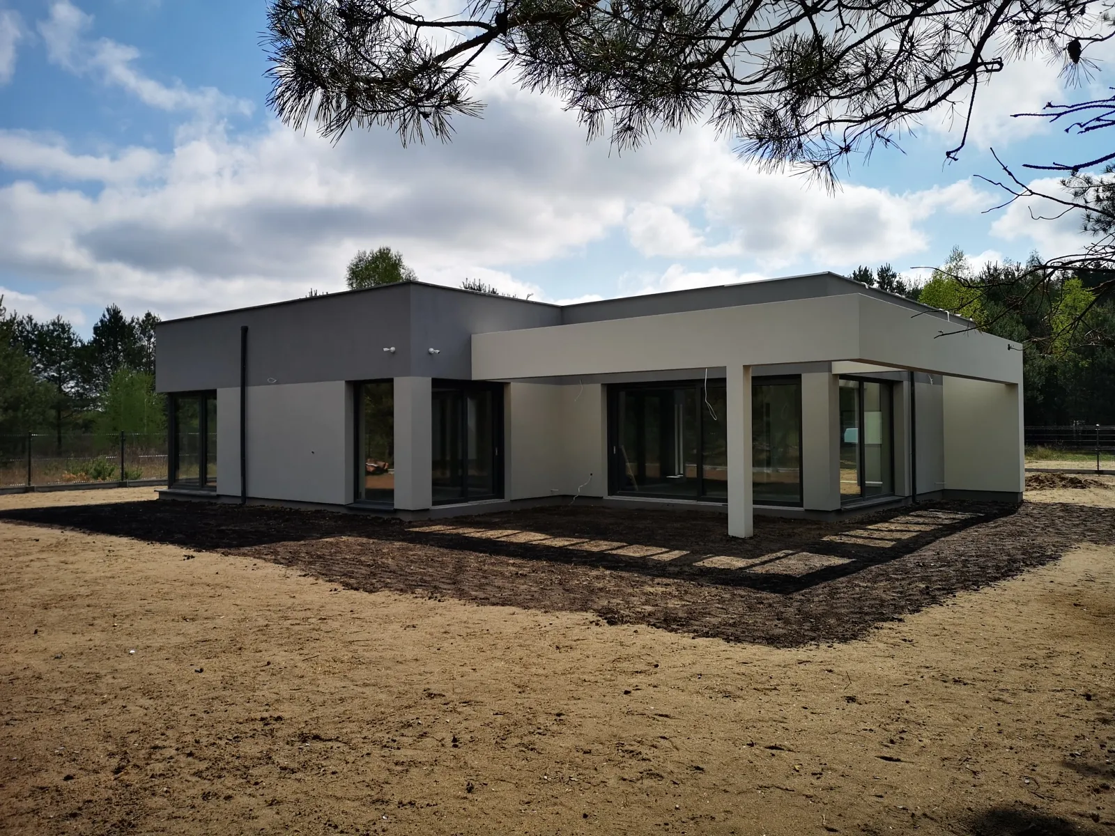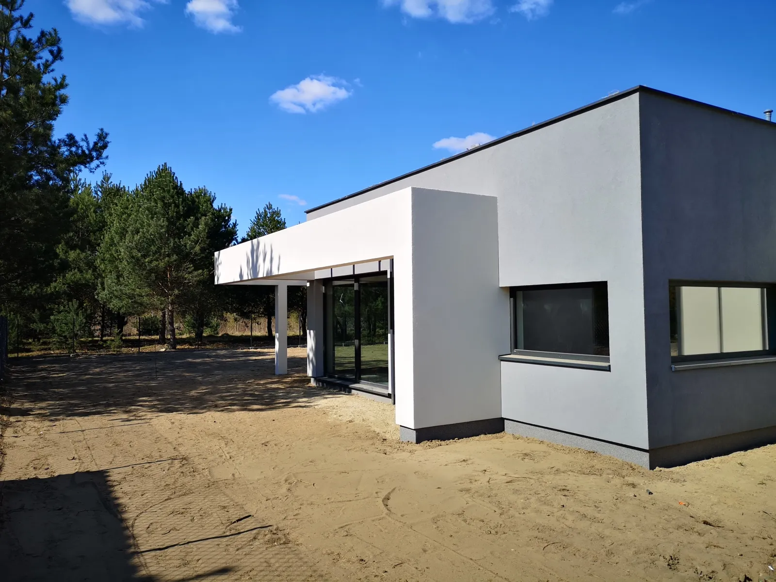 Konštrukcia plochej strechy bola zateplená polystyrénom a pokrytá vonkajšou povlakovou lepenkou. Budova bola vybavená elektrickou inštaláciou, vodovodnou a kanalizačnou inštaláciou, rekuperačným systémom a elektrickým vykurovacím systémom Caleo. Dom bol prispôsobený na montáž klimatizácie a inštaláciu fotovoltického zariadenia na streche. Moderné a veľké presklenia a široké posuvné dvere v systéme HST umožňujú vynikajúce prepojenie domu so záhradou.