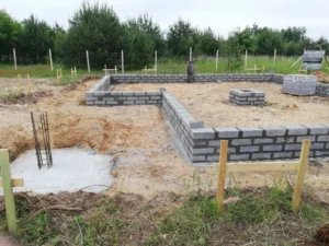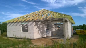 Dom s rozlohou 96 m² bol postavený na tradičných základoch, teda zo železobetónových základových pásov a základových múrov. Steny boli vyrobené z pórobetónových tvárnic a murované na tenkovrstvovom lepidle triedy M5.