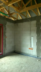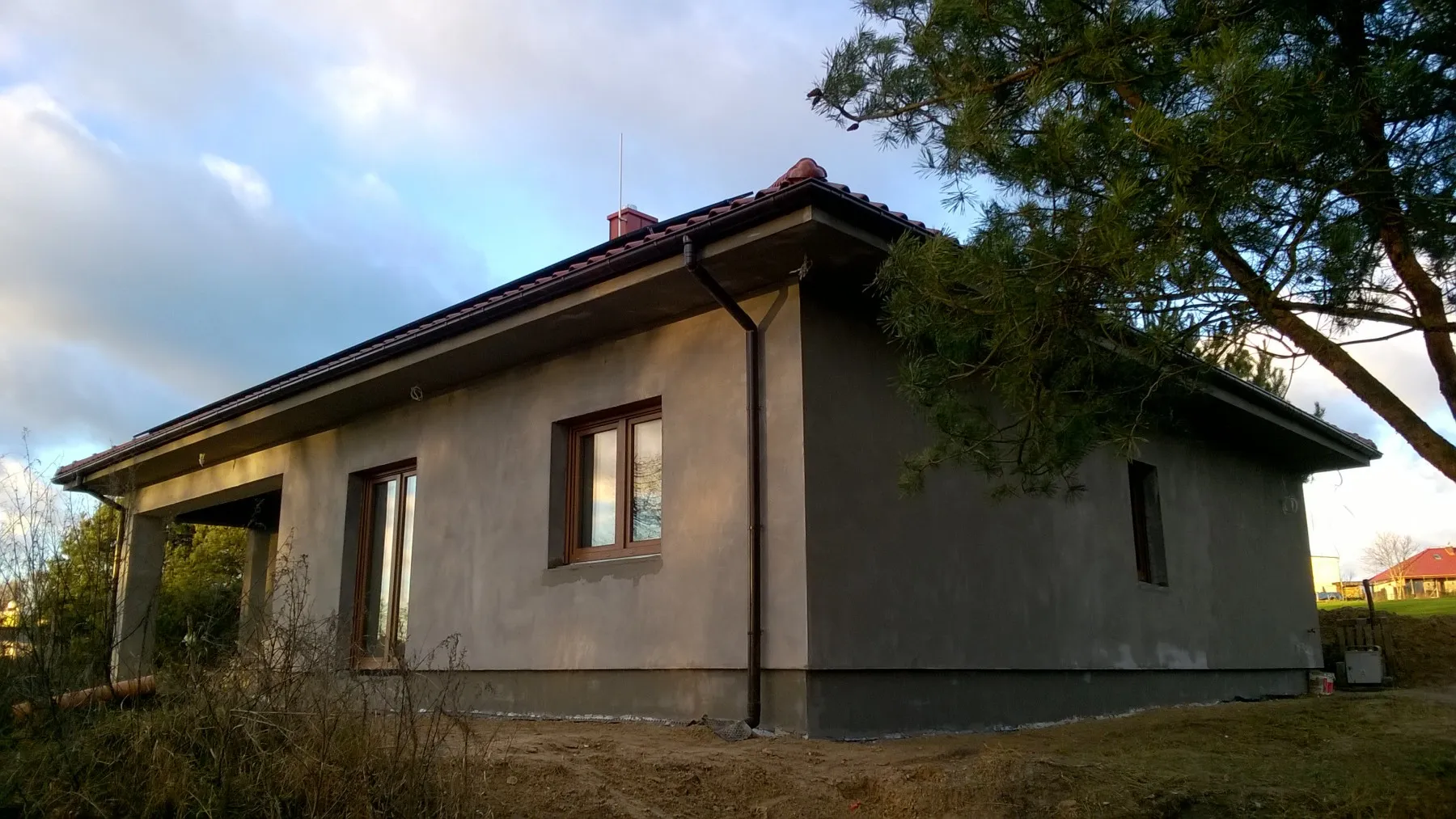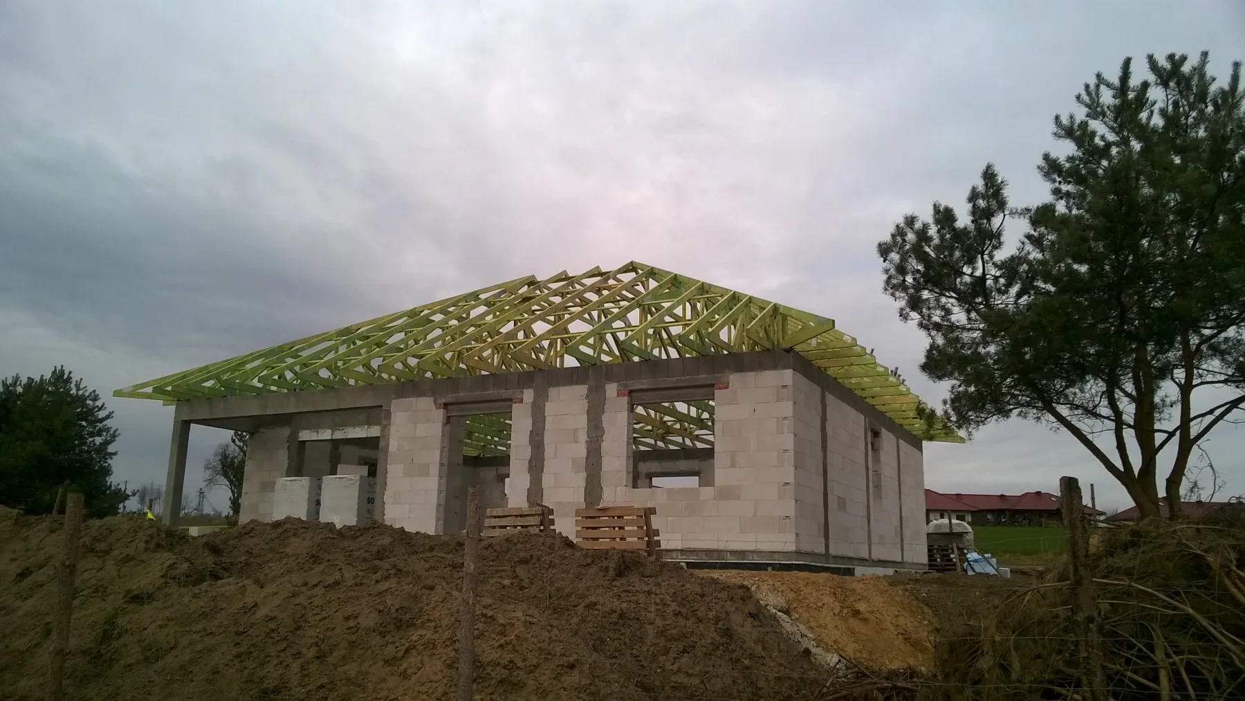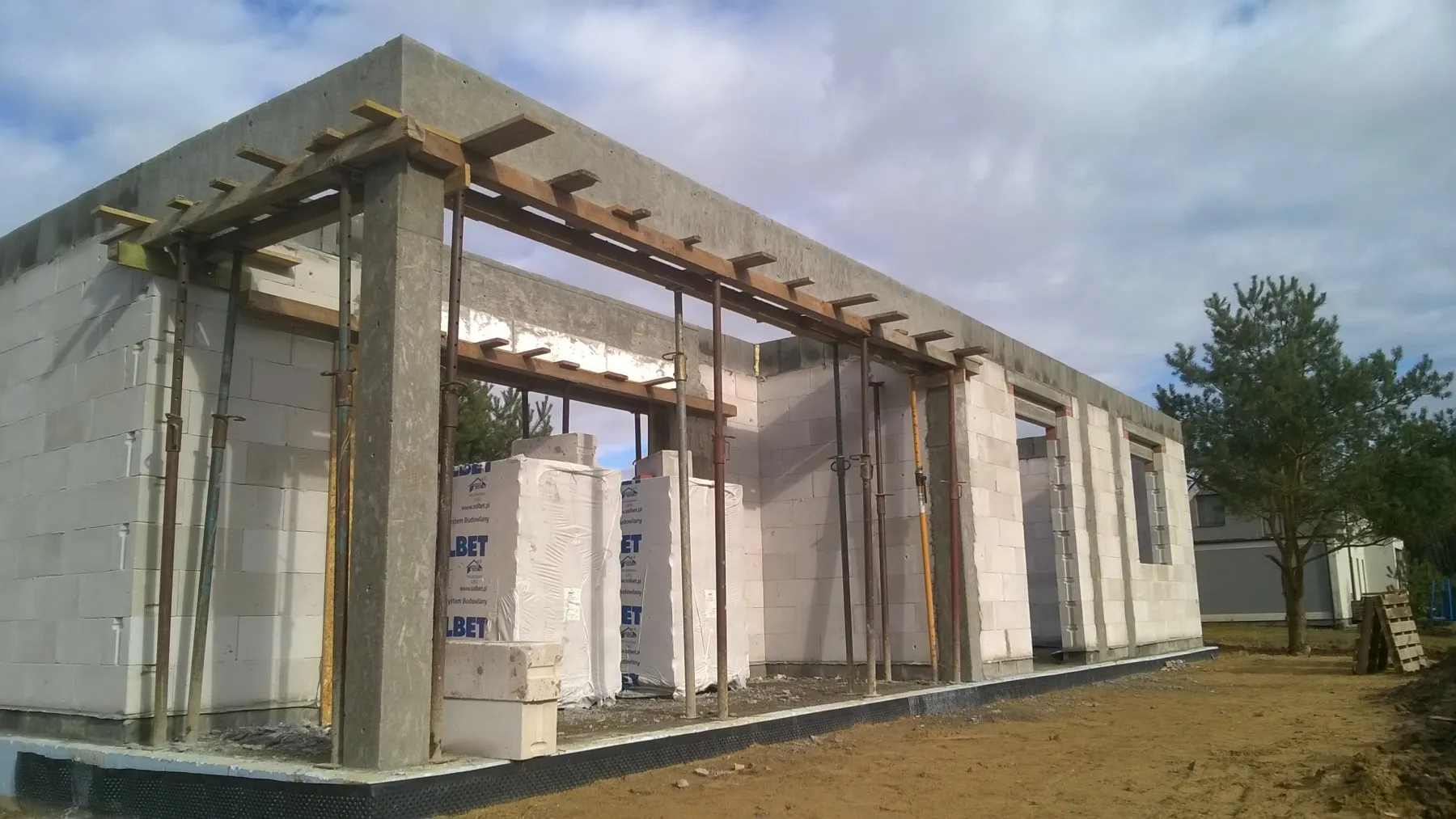 Dom s rozlohou 116 m2 je postavený na tradičných základoch, konkrétne vystužených pásoch a základových múroch. Nosné a priečkové steny boli vyrobené z pórobetónu s hrúbkou 24 cm a 12 cm. Strešná konštrukcia bola zhotovená z prefabrikovanej drevenej strešnej konštrukcie podľa konštrukčného projektu, z dreva triedy C24, štvorsmerne brúseného a impregnovaného. Strecha budovy bola pokrytá škridlou Roben Bornholm v medi farbe.