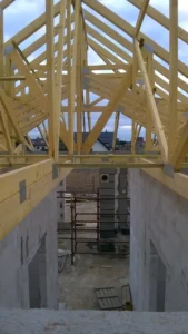 Dom s úžitkovou plochou 128 m² bol postavený na tradičných základoch, teda na vystužených pásových základoch a základových murovaných stenách. Nosné a priečkové steny boli vyhotovené z pórobetónu s hrúbkou 24 cm a 12 cm. Strešná konštrukcia bola zhotovená z prefabrikovanej drevenej konštrukcie podľa projektovej dokumentácie, z dreva triedy C24, štvorsmerne brúseného, sušeného a impregnovaného. Strecha budovy bola pokrytá plochou betónovou škridlou Teviva v grafitovej farbe.