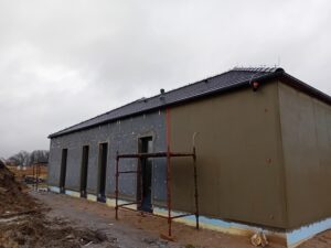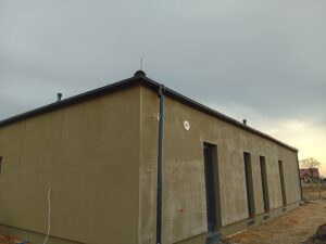 Strecha bola zateplená PUR penou s hrúbkou 25 cm, pričom na vonkajšie steny bol použitý fasádny polystyrén s hrúbkou 20 cm. Budova bola dokončená pomocou silikónovej omietky.