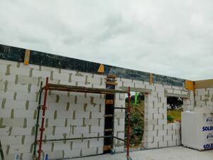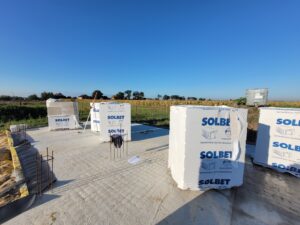 Dom o rozlohe 116 m² bol postavený na zbrojenej základovej doske spolu s termoizoláciou o hrúbke 15 cm, vyrobenou z extrudovaného polystyrénu XPS 300. Nosné a priečkové steny boli vyrobené z pórobetónu s hrúbkou 24 cm a 12 cm. Strešná konštrukcia bola zhotovená z prefabrikovaných krovov, z dreva brúseného zo všetkých strán, zatiaľ čo strecha bola pokrytá vlnitými betónovými taškami.