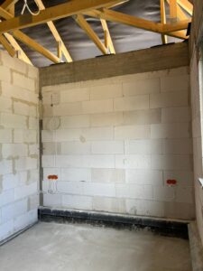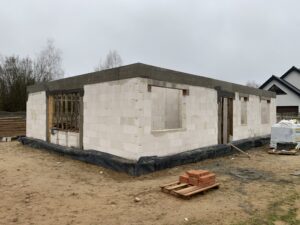 Dom má rozlohu 98 m² a bol postavený na tradičných základoch, konkrétne na vystužených základových pásoch, ktoré sú zateplené styropianom Aqua s hrúbkou 15 cm na základových múroch. Nosné a deliace steny sú vyhotovené z pórobetónu s hrúbkou 18 a 12 cm. Krovy boli vyrobené z prefabrikátov a strecha budovy bola pokrytá vlnitou betónovou škridlou v grafitovej farbe.