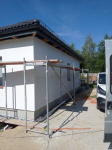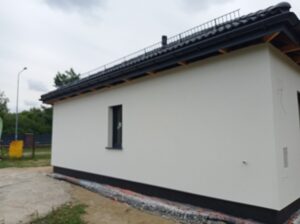 Na zateplenie vonkajších stien bol použitý fasádny polystyrén s hrúbkou 20 cm. Dokončenie fasády budovy bolo realizované pomocou silikónovej omietky v bielej farbe.