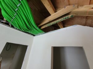 W budynku wykonano instalacje elektryczne, telekomunikacyjne oraz wodno-kanalizacyjne, a także kompletny elektryczny system grzewczy wyposażony w czujniki i termostaty, jak również zamontowano instalację rekuperacji. Dodatkowo zamontowano osłonę ochronną dla fotowoltaiki.